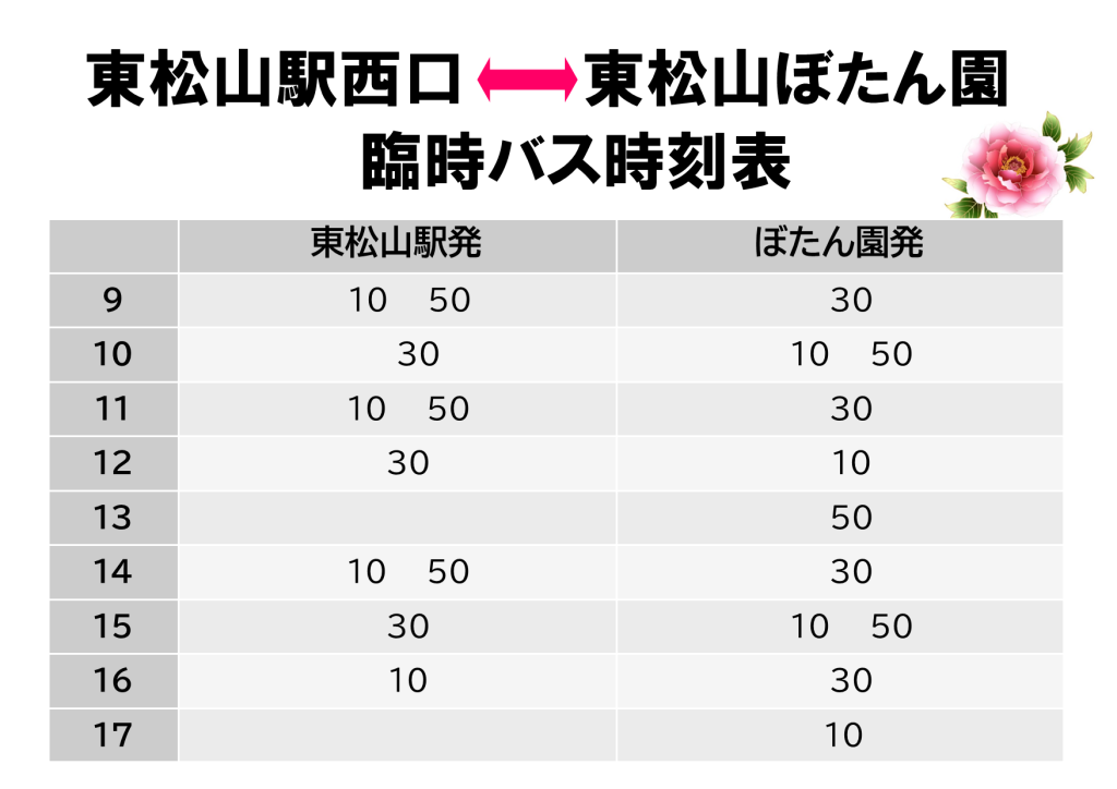 東松山市観光協会の【東松山ぼたん園行き臨時バス】